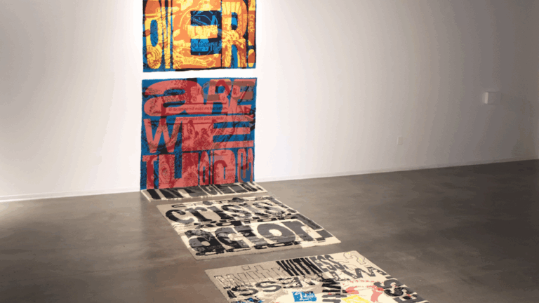 It is undeniable that the human relationship to the web has been a controversial topic among U.S. public spheres, with most discourse regarding this topic taking place digitally. But what transpires when internet discourse is translated into tangible objects whose material associations oppose that of the digital sphere? In her thesis show titled I’m Scared, Angela Anh Nguyen confronts this question by materializing the immaterial. This is performed through the conflation of two gestures: (1) The physical act of “tufting” (a form of rug-making) and (2) the digital act of the “scroll”. As a result, her body of work presents a single psychological response through two contrasting modes of interaction. Fundamentally, in I’m Scared, there exists a confrontation, causing the spectator to question one’s relationship to the digital sphere by way of the “rug”.