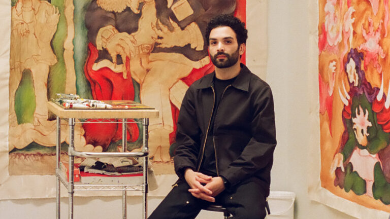 Midnight Fantasies is an exhibition exploring the artist’s world-building tale of twisted mythologies and legends. Influenced by painters, video games, and films, the work explores the artist’s ancestry to Fine Art influences and family traditions. The exhibition also discusses displacement and immigration and how family storytelling has helped inspire his world-building process.